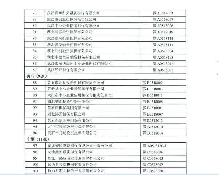 附:全省融資擔(dān)保公司擬核準(zhǔn)經(jīng)營(yíng)許可名單